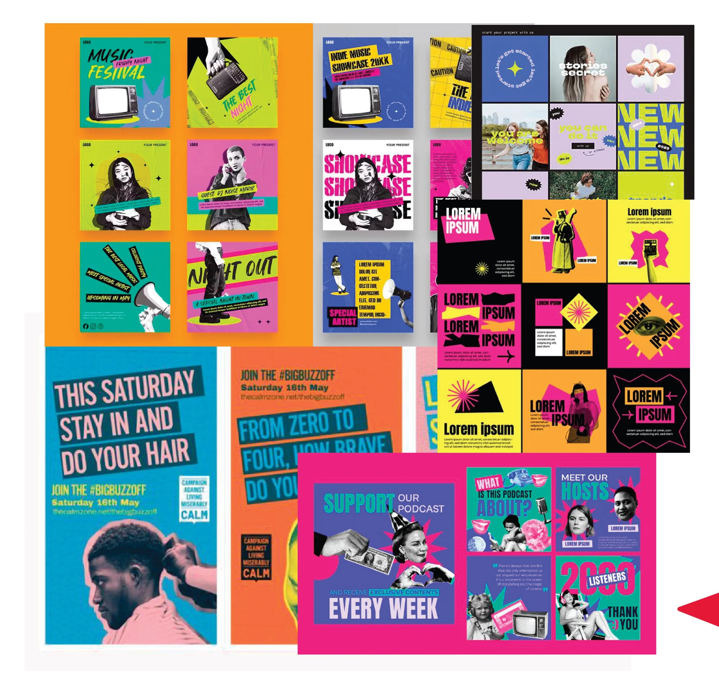 Social content creation, multi-platform brand application, cross-functional collateral development, and ongoing organic campaign management.