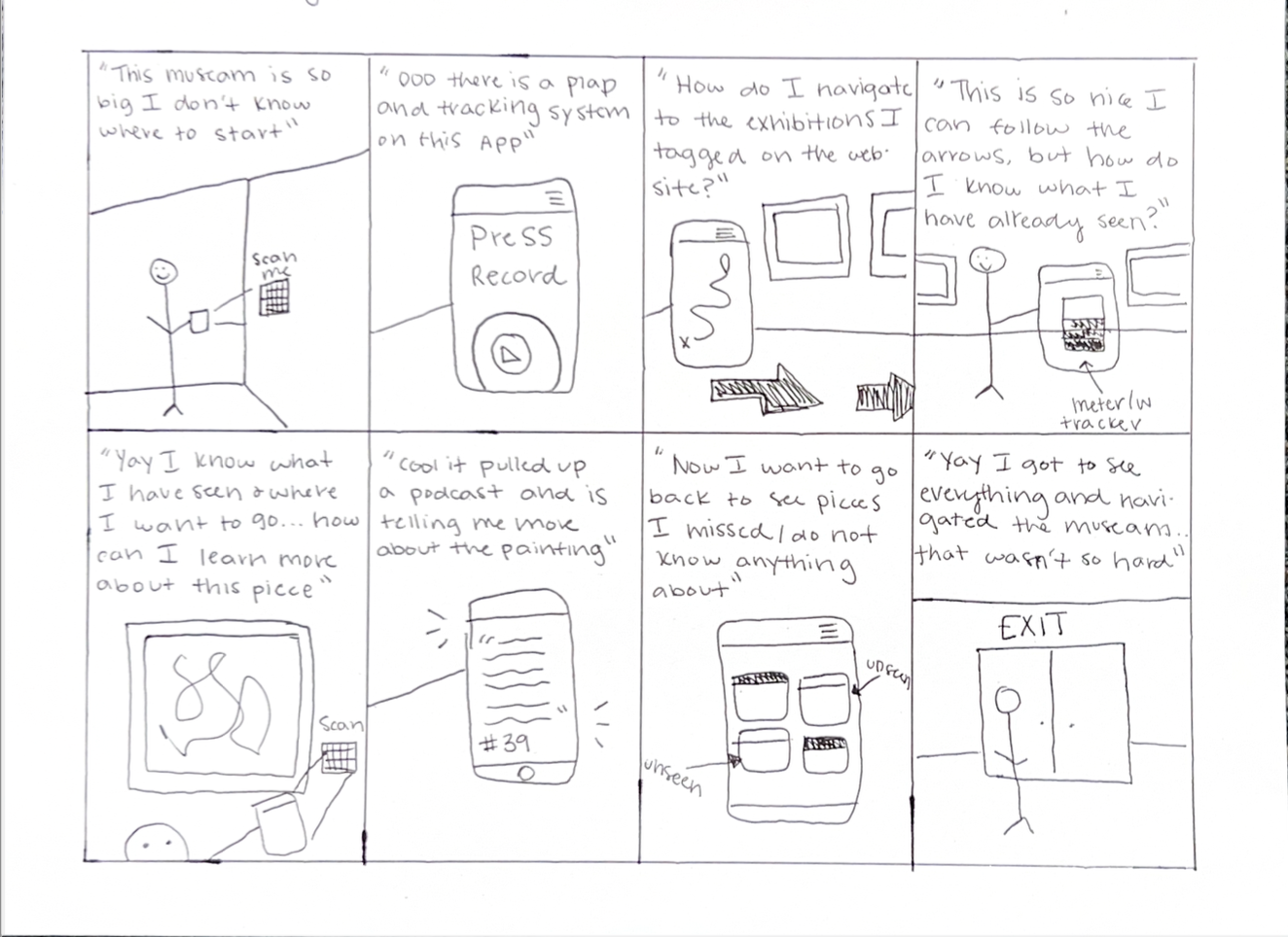 This project proposes an IKEA-inspired wayfinding system that helps visitors navigate the entire museum while tracking what they’ve seen. Using foot patterns and QR codes, it recommends related artworks, nearby exhibitions, and museums. After the visit, users can revisit the app to vote, connect, and explore personalized suggestions.