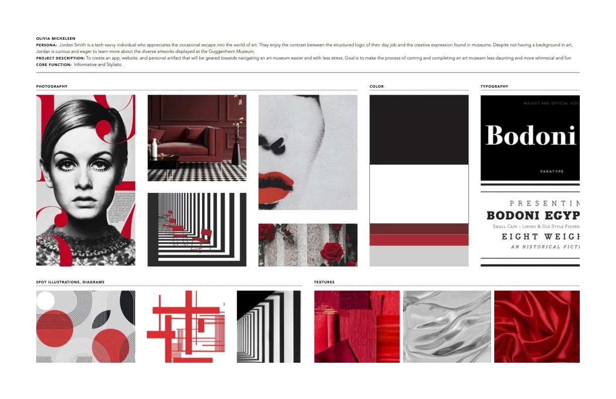Designed a mobile app for museum navigation, artwork interaction, and post-visit recommendations; developed a website to explore collections, upcoming exhibitions, and visit planning tools; and created a take-home artifact to foster reflection and community through QR-enabled content. Each component was guided by persona development, style boards, and iterative concept refinement.